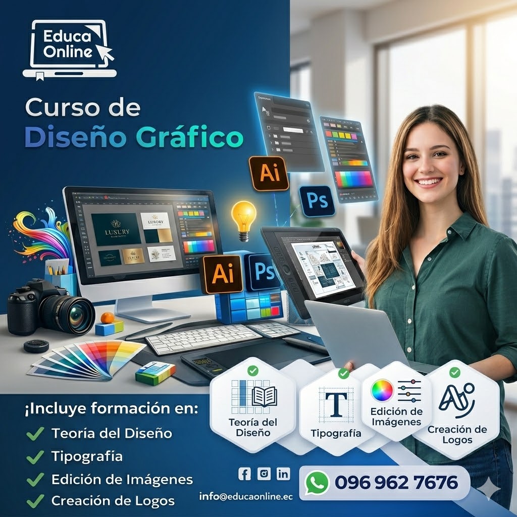 Objetivo del curso: Capacitar al estudiante en el uso básico de Adobe Photoshop e Adobe Ilustrador, desarrollando habilidades para crear piezas gráficas digitales, logotipos simples y contenido para redes sociales, aplicando principios fundamentales del diseño.